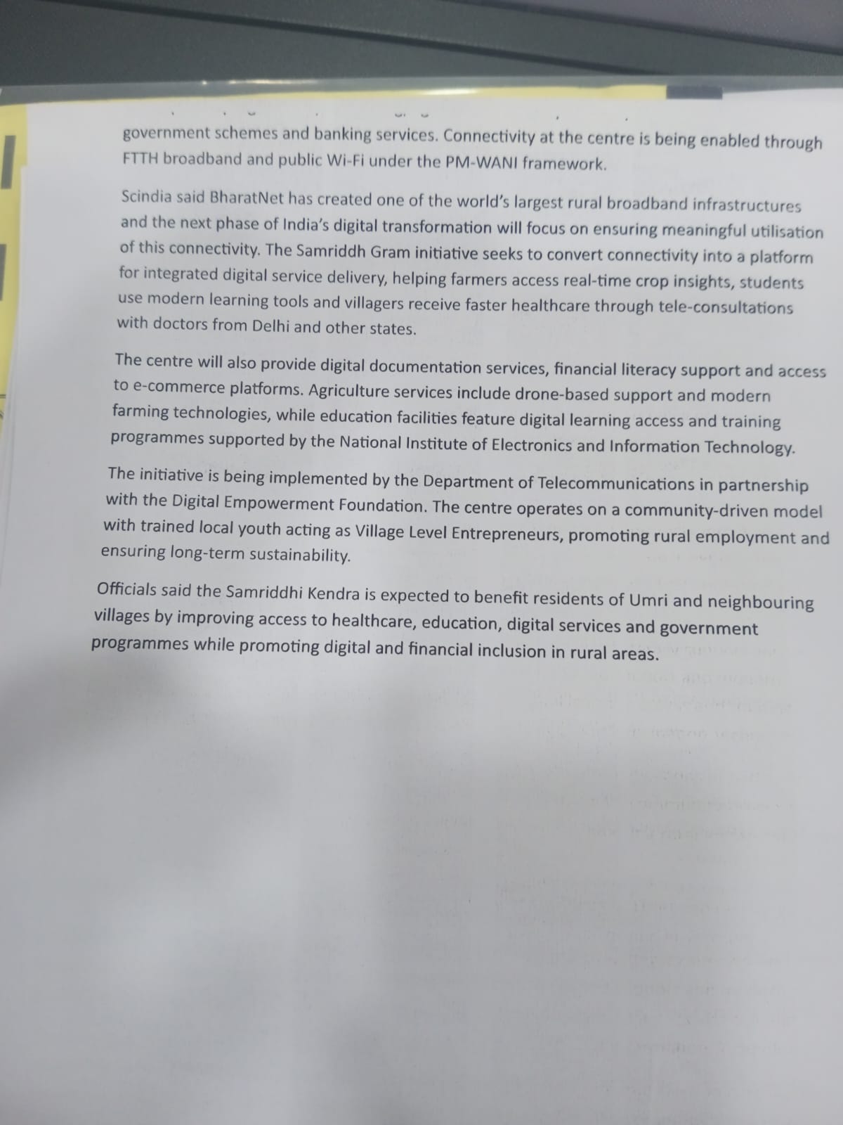 Samriddhi Kendra Launched Under BharatNet Rural Digital Initiative
