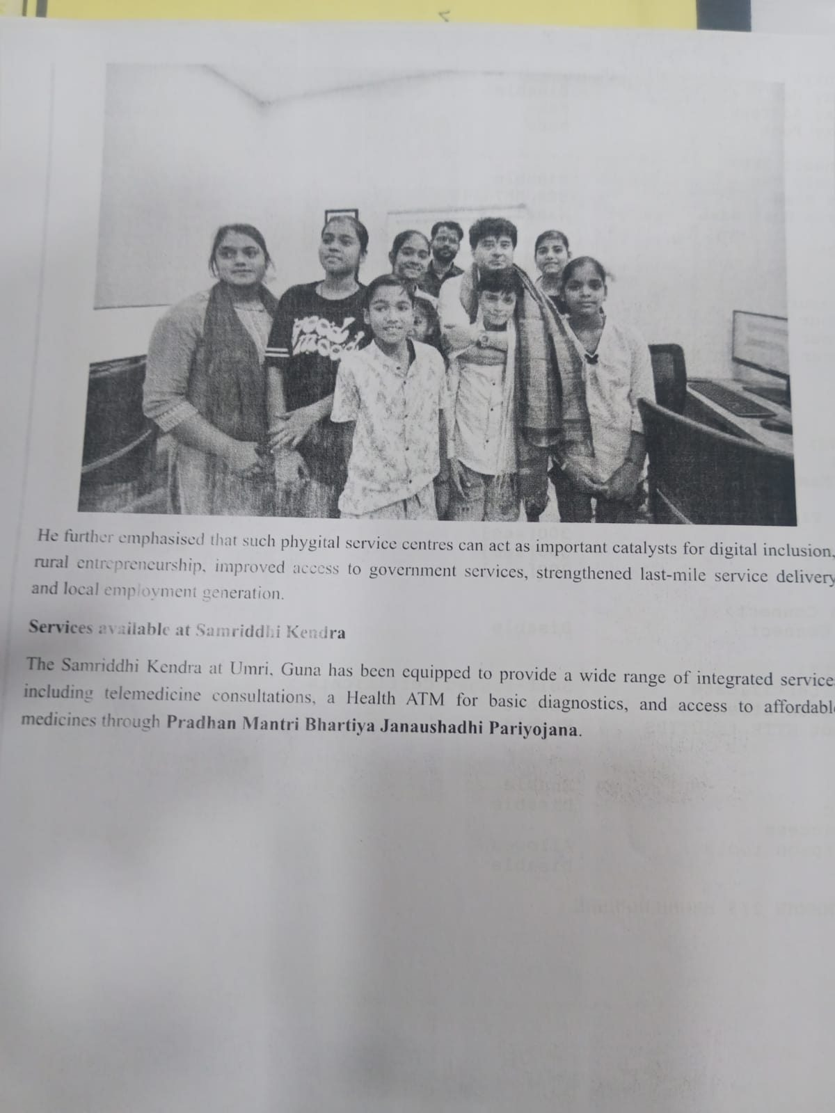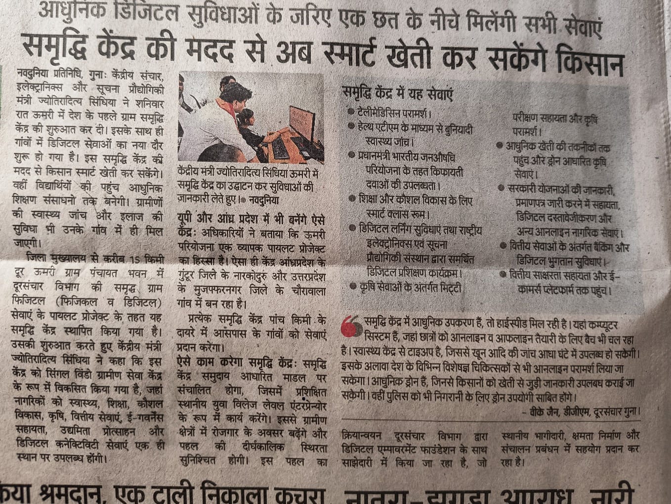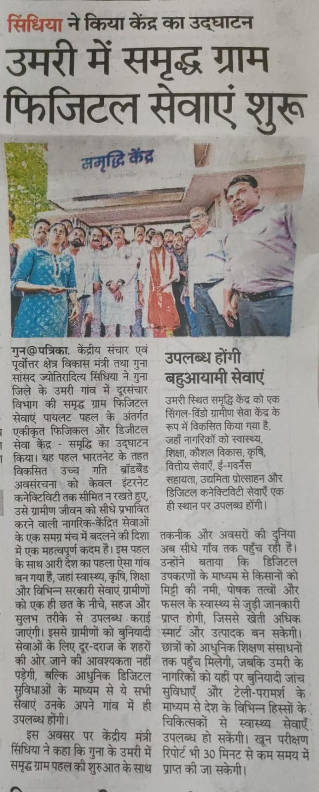 देश के 3 समृद्धि केंद्रों में से एक गुना में:सिंधिया ने किया उद्घाटन; एक ही जगह मिलेंगी ई-बैंकिंग और टेलीमेडिसिन जैसी 8 सुविधाएं