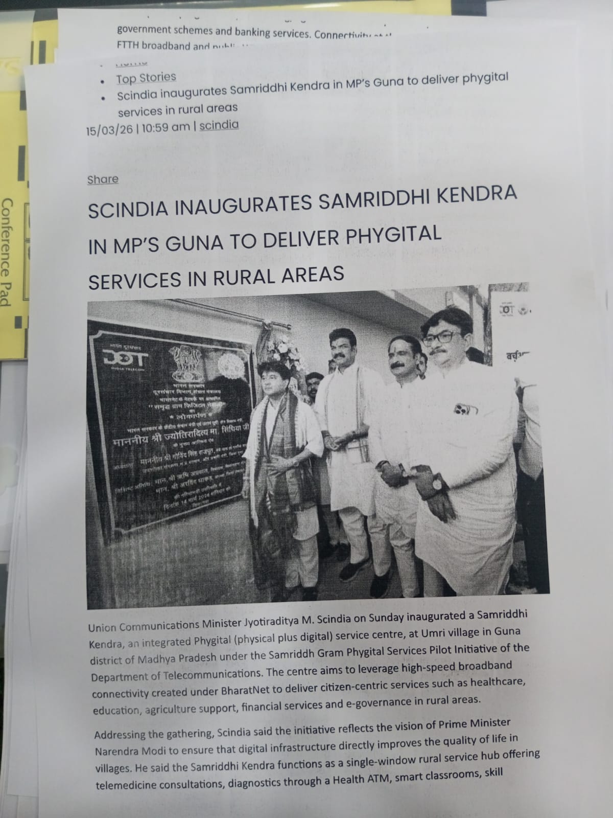 Scindia inaugurates Samriddhi Kendra in MP’s Guna to deliver phygital services in rural areas